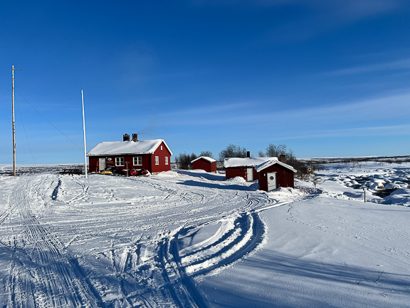 Tidligere var det såkalte "ødestuer" mellom fjellstuene. Omtrent slik det er værskur i Sverige. Men samene (og andre) bruker scooter nå og har ikke det samme behovet. Dermed er mange forfalt og borte. Men der borte ligger det en - omtrent midtveis mellom Mollisjon og Ravnastua. En rød hytte som står åpen. Den er avmerket på kartet og guiden i turfølget fortalte at de hadde benyttet den til rasting på forrige tur da det blåste ganske hardt.