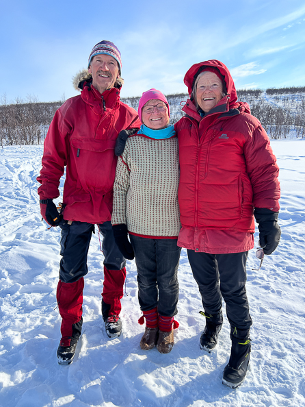 Spaden kom også til nytte. Der borte er 4 skiløpere som teltet på vidda. Jeg traffe de senere og de fortalte at de hadde sett et "forrykende" nordlysshow kvelden før. Det var nok da vi satt i badstua :-/