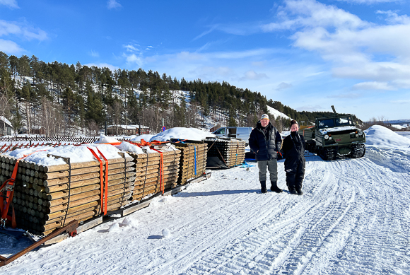 Nede ved veien treffer jeg et ungt par som forbereder en transport til fjells med gjerdestolper. Gilde folk å prate med.