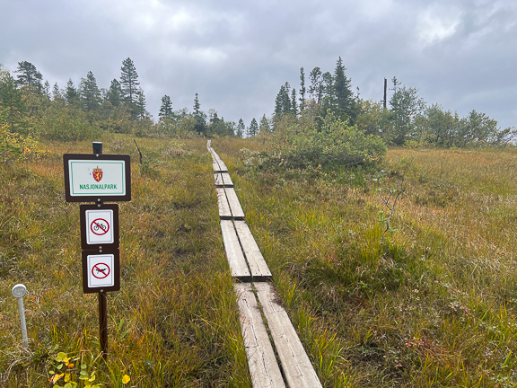 Jeg visste at det var mye myr og klopplagt sti oppover. Det har regnet mye i det siste og myrene sto i vann. Så da ble jeg litt skeptisk når jeg etter å ha gått et stykke innover så at kloppene var tatt opp. Det er visst planer om å legge om stien.