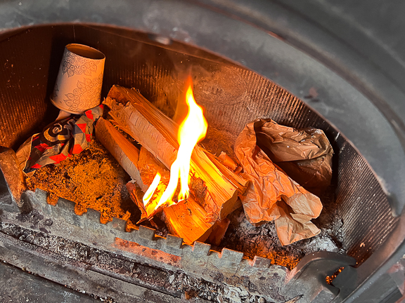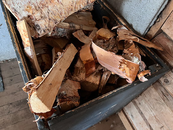Ikke vanskelig å få fyr i ovnen heller når den som var her sist legger frem opptenningsved og never.