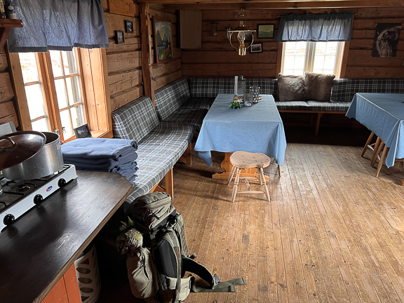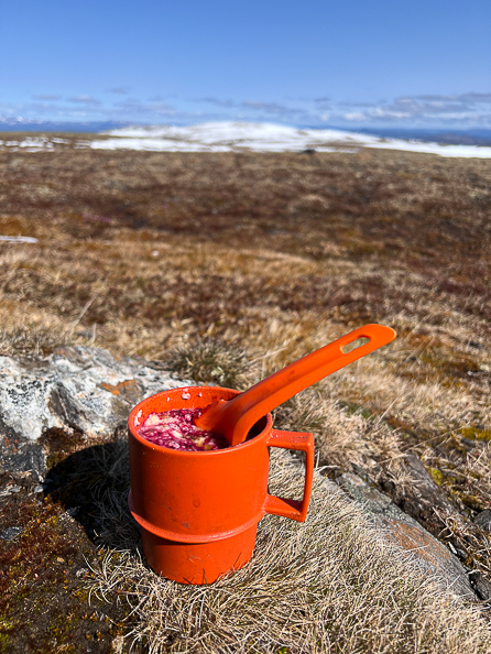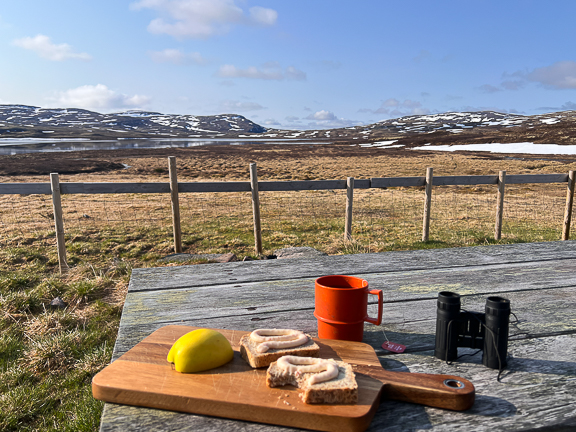Etter en god natts søvn væknet jeg til blå himmel og det var deilig å spise frokosten utenfor. Holdt utkikk etter rein også....