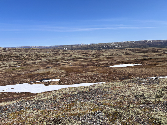 Onsdag var det dårlige værmeldinger. Torsdag var det meldt fint, så jeg ville til fjells. Her ser jeg innover til Hiåsjøen.