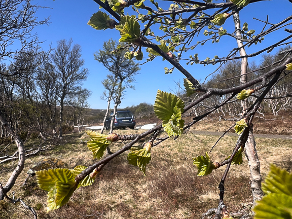Så er jeg tilbake ved bilen. Jeg måtte parkere nedunder pga en snøfond. Skogen begynner å komme etter her også.