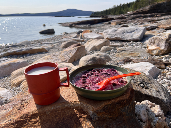 Frokost med luksushavregrøt og melk (tørrmelk).