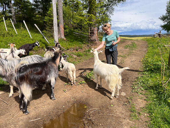 Vi gikk en tur på Holtet. Her møter vi geitene til Hanne og Endre.