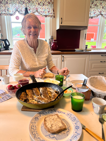 Vi var nedi elva og prøvde fiske (2.7.) og faktisk beit den bra så vi fikk da noen. Men det var mye knott, så vi ble ikke så lenge. Men mer enn nok til frokost dagen etter.