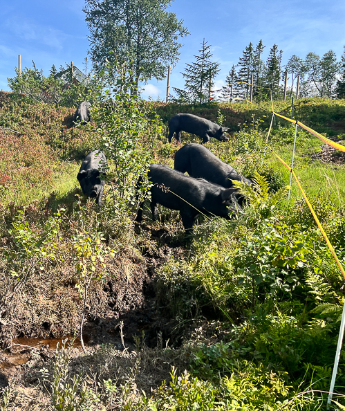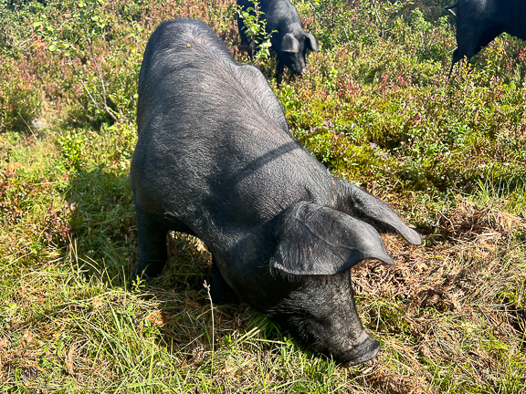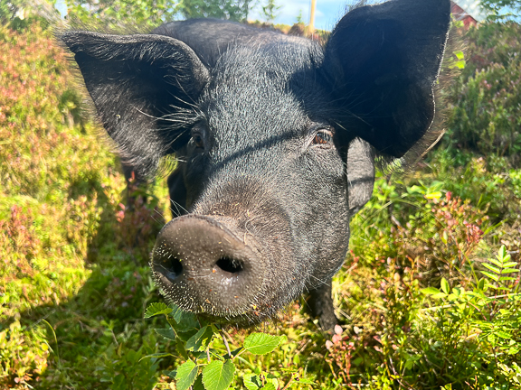 Stien opp til Storkluken tok av rett nedefor setra (Framimovollen), og her gikk det griser og beitet.