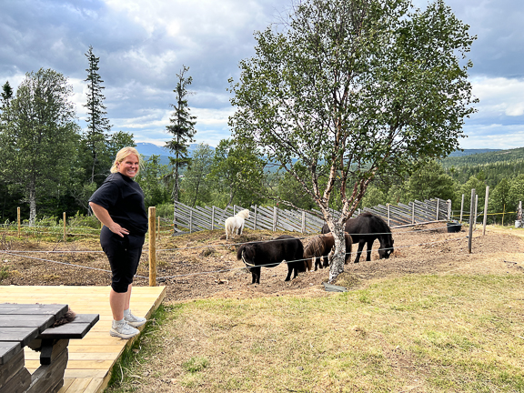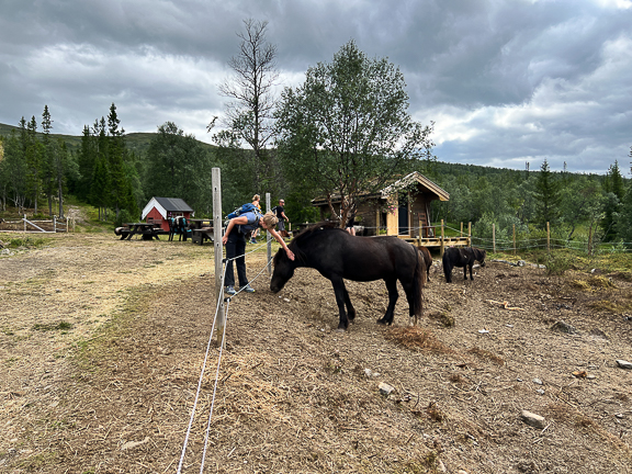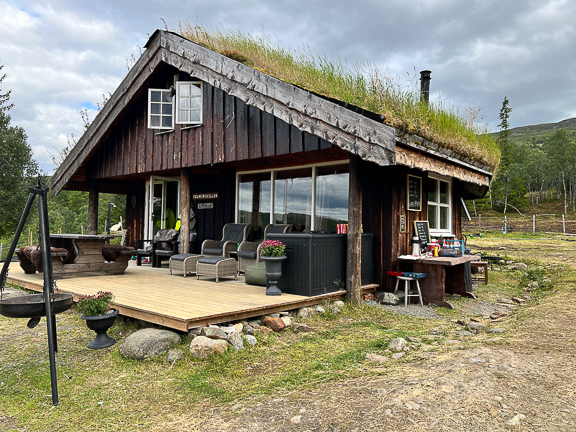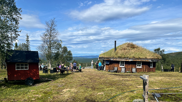 Når vi gikk ned var vi innom setra. Driftige folk som serverer kaffe og vafler i helgene. Og i dag har de servert rømmegrøt !!!