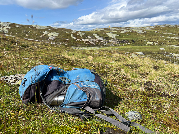 Det blåste godt, så vi fant le litt unna røysa og spiste matpakken her.