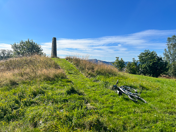 Onsdag rant opp med nydelig vær og jeg tenkte å ta meg en sykkeltur (og kanskje se etter litt mer blåbær). Her har jeg passert Heimdal og Skogly og er på tur ned til Spongdal. Ovenfor Lauglo står det en fin støtte.