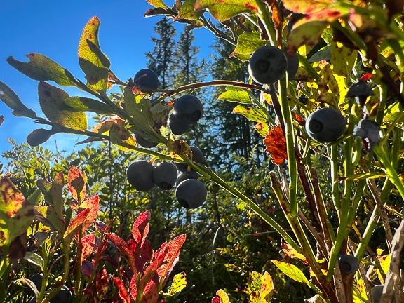 Jeg syklet opp tømmerveien og fant nydelige blåbær ved første stopp.