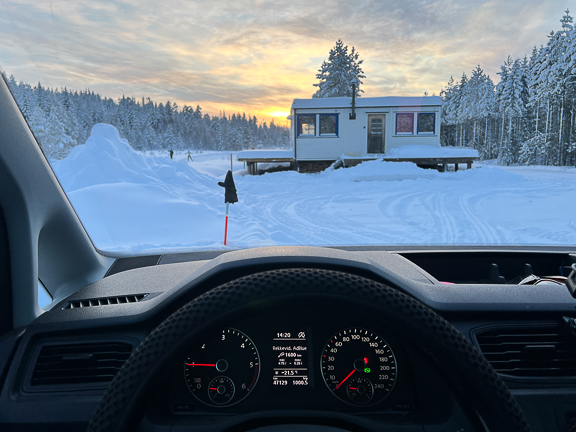 Men det var en skikkelig kald dag. Minus 21,5 står det i displayet når jeg starter opp på hjemvei.