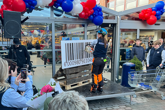 Butikksjef (kjøpmann heter det visst på Remaspråket) kutter prisene med motorsag.
